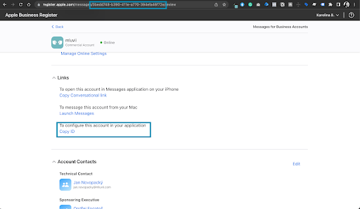 ### Nastavení Apple Messages for Business účtu
